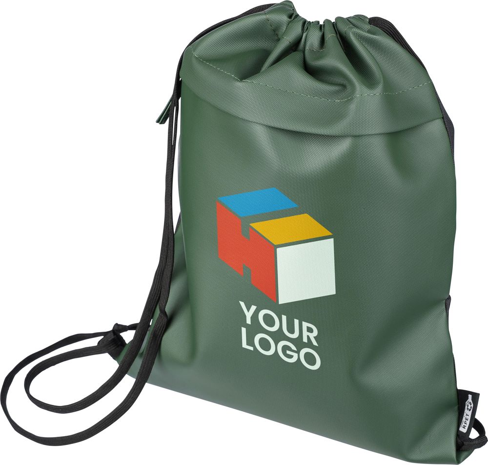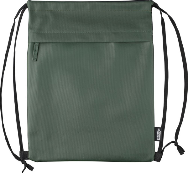 Die Kordelzugtasche ist aus rPET-Polyester (600D) mit PU-Beschichtung auf der Vorderseite zur Wasserabweisung gefertigt. Sie verfügt über eine versteckte Reißverschlusstasche auf der Vorderseite sowie ein geräumiges Kordelzugfach. Sie verfügt über zwei Fächer mit Vorder- und Innentaschen. Das Fassungsvermögen beträgt 8 l, die Tragfähigkeit 8 kg. Sie verfügt über ein rPET-Etikett auf der Außenseite.