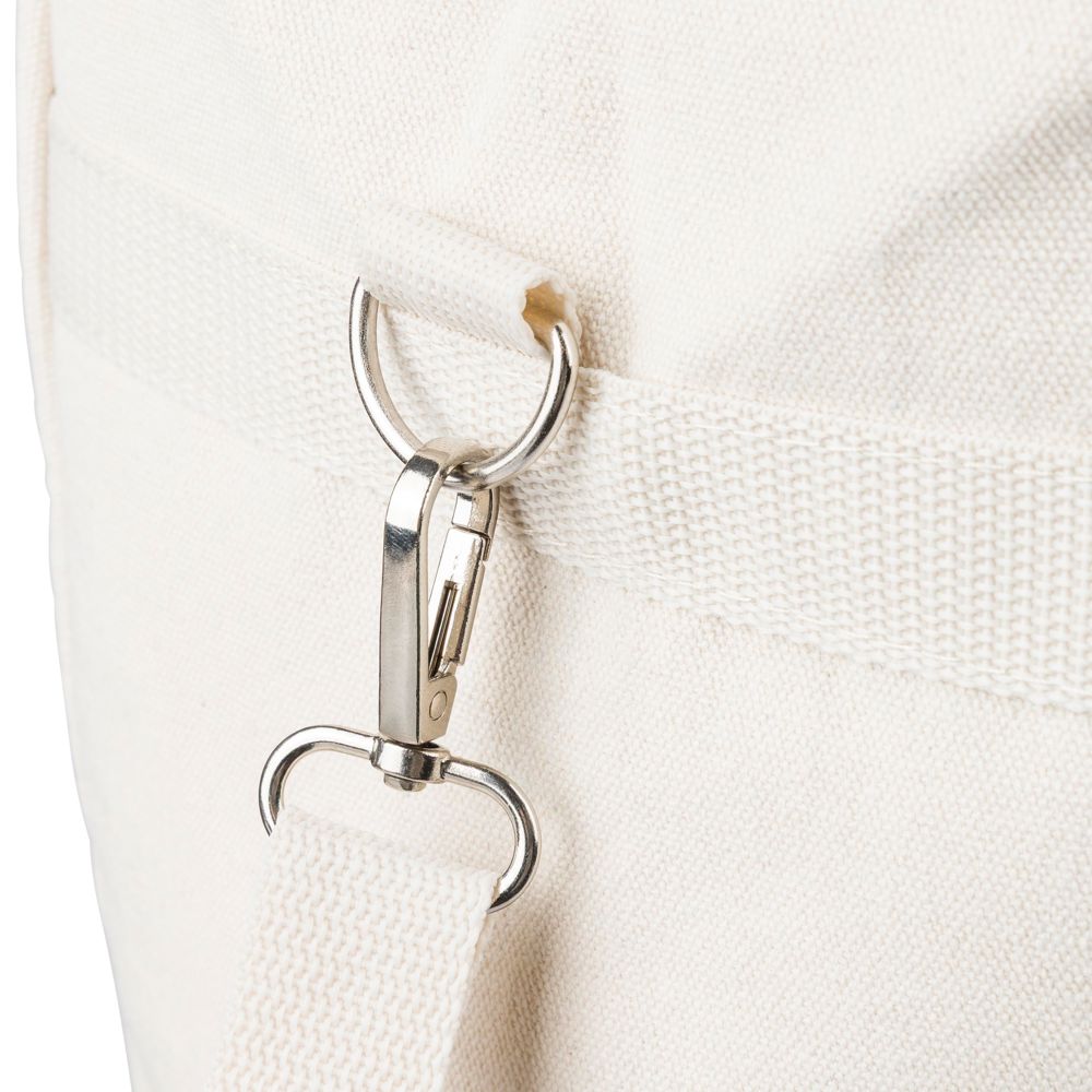 Kühltasche aus recyceltem Polycotton (330 g/m²) mit 23 Liter Fassungsvermögen. Mit zwei Tragegriffen (3,5 × 60 cm), einem verstellbaren Schultergurt (2,5 × 110 cm) mit Metallschnalle und passendem Gurtband. Isoliert mit Aluminiumfolie. Mit rPET-Etikett außen und einem Etikett innen.