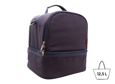Thermotasche mit doppeltem Fach aus Polycotton 160g/m². Maße des oberen Fachs: 25x20x16cm. Maße des unteren Fachs: 25x20x9cm. Kompatibel mit allen unseren Bento-Modellen. Isolierende 3mm dicke Auskleidung. Schultergurt. Möglichkeit eine Visitenkarte einzufügen. Verstärkte und gepolsterte Griffe für einen besseren Halt. Reißverschluss. Fassungsvermögen: 12,5 L.