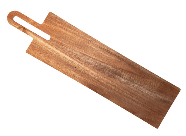 Massives Akazienholz. Große Öffnung im Griff zum Aufhängen des Brettes an der Wand. Kann auch als Servierbrett verwendet werden.