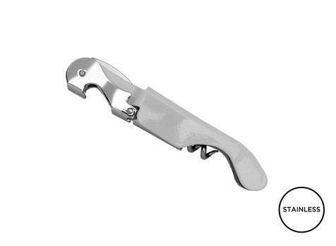 Professionelles Doppelhebel-Kellnermesser. Griff aus Edelstahl. Korkenzieher mit fünf Spiralen. Mikroverzahnte Kapselschneideklinge. Flaschenöffner.