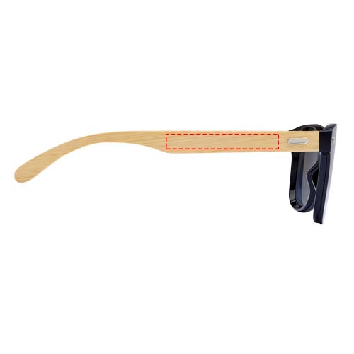 Stylische Sonnenbrille mit farbigen Gläsern und Bambusbügeln. Die UV-400-Gläser schützen vor schädlichen ultravioletten Strahlen. Erfüllt die europäische Sicherheitsnorm EN12312-1.