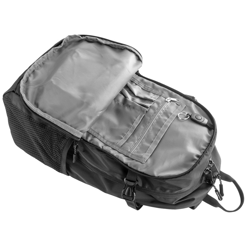 Hochwertiger und praktischer Schwarzwolf outdoor Rucksack, der sowohl für Reisen als auch für den täglichen Gebrauch geeignet ist. Er verfügt über ein Hauptfach mit Reißverschluss und ein Laptopfach, eine vordere Reißverschlusstasche mit zusätzlicher Innentasche und Organizer für kleine Gegenstände, sowie zwei seitliche Netztaschen. Auf beiden Seiten befinden sich Kompressionsriemen mit Schnallen. Der Rucksack ist mit einem gepolsterten Rückensystem und gepolsterten Schultergurten ausgestattet. Volumen: 23 l Gewicht: 567 g Material: Nylon / Ripstop / Polyester Empfohlene Veredelungstechnik: Magicprint Maximale Druckfläche: 80 × 150 mm Abmessungen: 30 × 48 × 16,5 cm