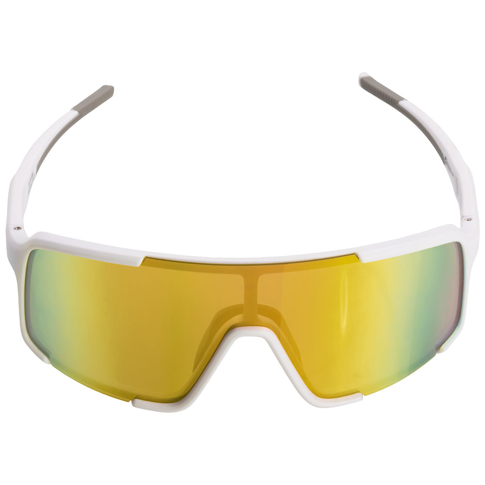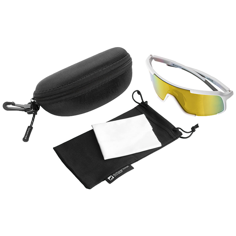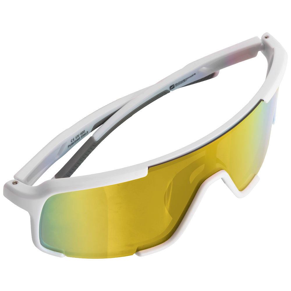Polarisierte Schwarzwolf outdoor Sportsonnenbrille mit farbigen Gläsern. Das Brillengestell ist weiß mit grauen Details und bietet UV-400-Schutz. Diese Sportbrille mit polarisierten Gläsern reduziert störende Blendungen und verbessert die Detailwahrnehmung im Freien. Das Ergebnis: weniger Augenbelastung und natürlichere Farbwahrnehmung selbst bei starker Sonneneinstrahlung. Ideal zum Laufen, Radfahren, für Wassersportarten und den täglichen Gebrauch.