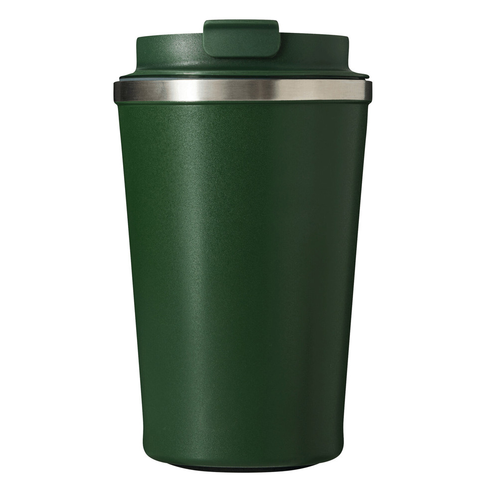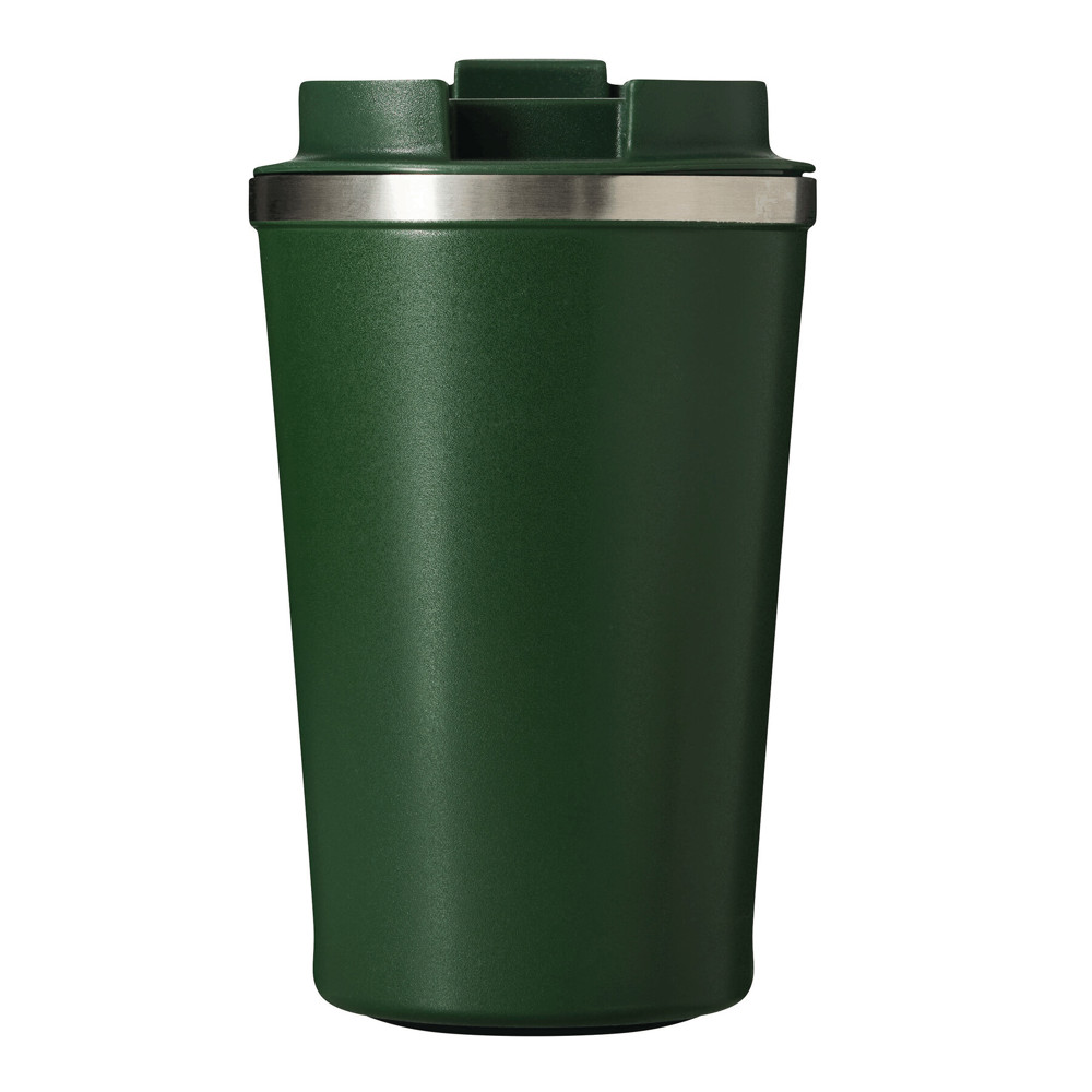 Vakuum-Isolierbecher VELOMUG, doppelwandig: innen aus recyceltem Edelstahl und außen aus Edelstahl, farblich passender Kunststoff-Deckel mit sicherem Schraubverschluss, Silikon-Dichtring und integrierter Trinköffnung zum Aufklappen, gummierter Boden für gute Oberflächenhaftung, Füllmenge ca. 350 ml, hält ca. 8 Stunden warm und bis zu 12 Stunden kalt, in Box