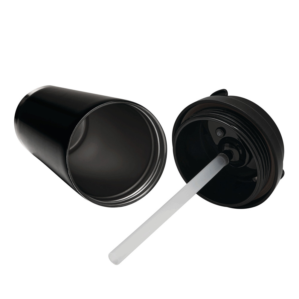 Vakuum-Isolierbecher MUG2GO, doppelwandig: innen aus recyceltem Edelstahl und außen aus Edelstahl, farblich passender 2-in-1-Deckel aus Kunststoff mit sicherem Schraubverschluss, Silikon-Dichtring, integrierter Trinköffnung sowie Trinkhalm zum Aufklappen und RPET-Trageschlaufe, Füllmenge ca. 500 ml, hält ca. 8 Stunden warm und bis zu 12 Stunden kalt, in Box