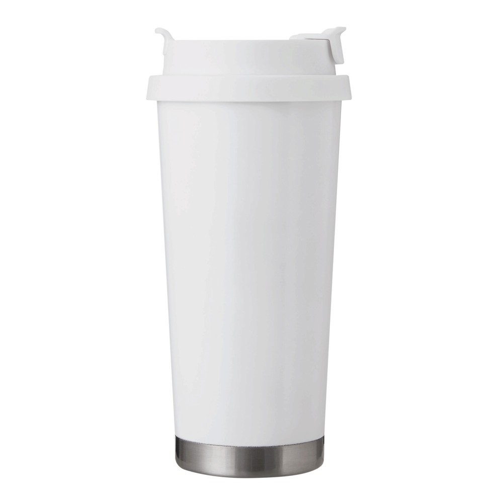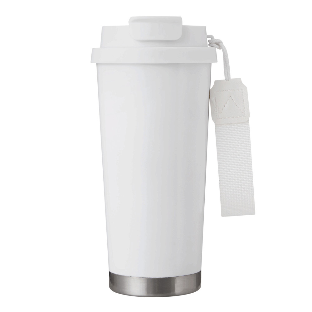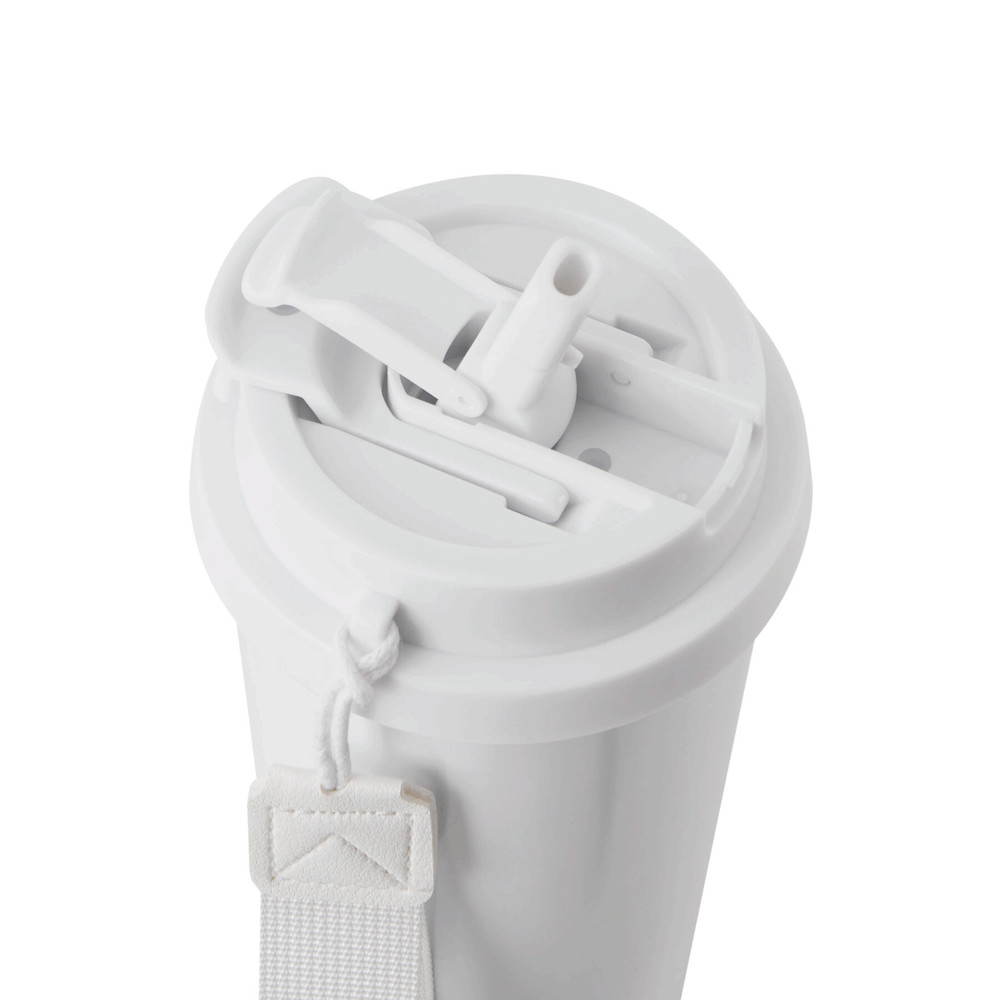 Vakuum-Isolierbecher MUG2GO, doppelwandig: innen aus recyceltem Edelstahl und außen aus Edelstahl, farblich passender 2-in-1-Deckel aus Kunststoff mit sicherem Schraubverschluss, Silikon-Dichtring, integrierter Trinköffnung sowie Trinkhalm zum Aufklappen und RPET-Trageschlaufe, Füllmenge ca. 500 ml, hält ca. 8 Stunden warm und bis zu 12 Stunden kalt, in Box