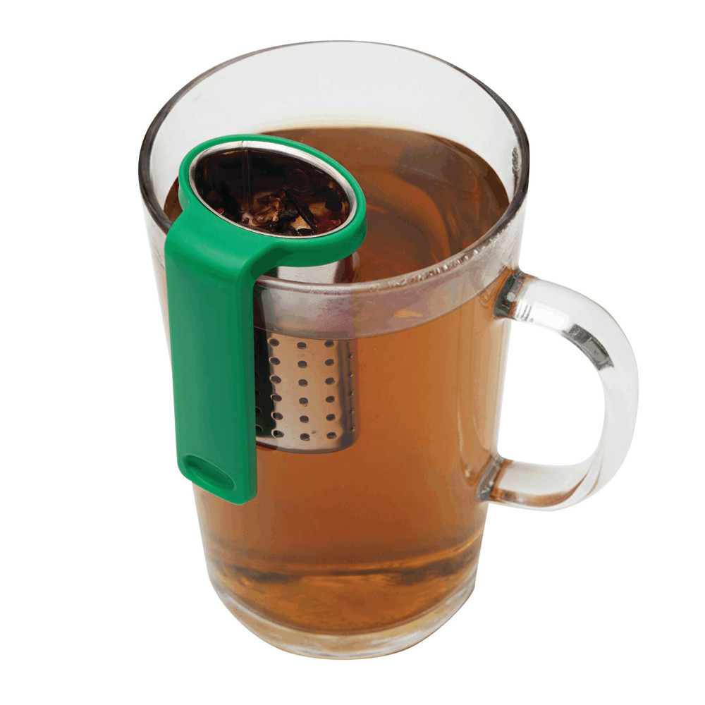 Teesieb STEEPSTER: wiederverwendbares Teesieb aus Edelstahl, geschmacksneutral, ideal für groben, losen Tee, mit praktischem Kunststoff-Clip zum einfachen Befestigen am Tassenrand