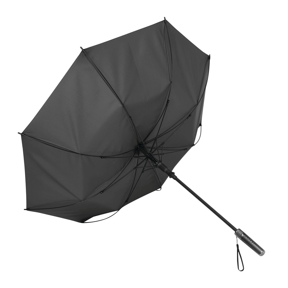Automatik-Stockschirm BLIZZARD: Fiberglasstock, Fiberglasspeichen und Kunststofftips, Kunststoff-Griff in Carbon-Optik mit integrierter Automatik-Auslösetaste und Handschlaufe, hochwertige Polyester-Pongee-Bespannung, Schließband mit Druckknopf