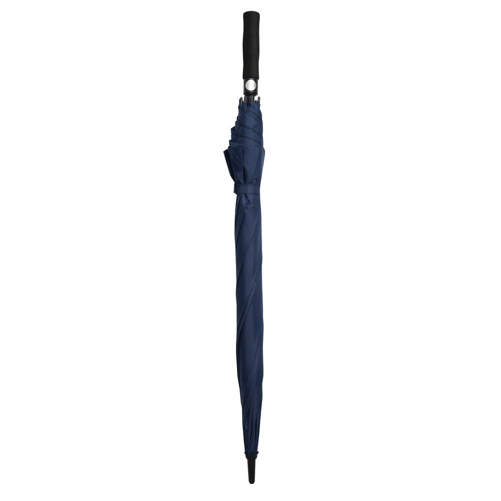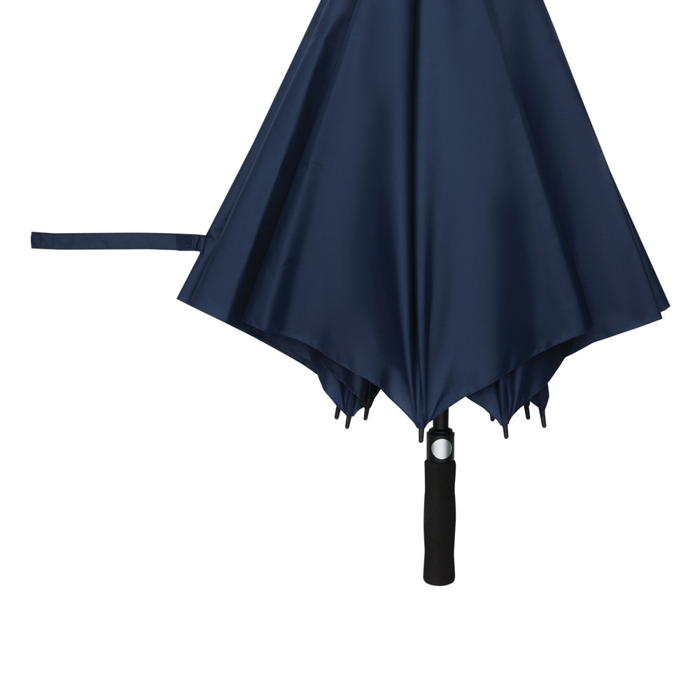 Automatik-Golfschirm ORA: Fiberglasstock, Fiberglasspeichen und Kunststofftips, EVA-Griff mit integrierter Automatik-Auslösetaste, Polyester-Pongee-Bespannung aus recycelten Kunststoffen / RPET, Schließband mit Klettverschluss