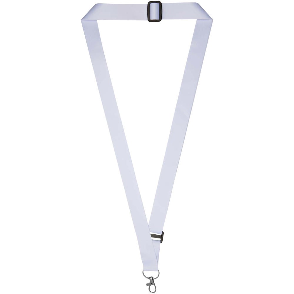 Verstellbares Lanyard mit Schiebeschnalle zum einfachen Verstellen der Länge und einem stabilen Metallhaken zum sicheren Befestigen von Namensschild, Ausweis oder Schlüsseln. Es kann ein- oder beidseitig bedruckt werden, wahlweise mit Standard- oder angepasster beidseitiger Bedruckung (eine angepasste Bedruckung gewährleistet, dass das Design auf beiden Seiten übereinstimmt). Hergestellt in Europa.