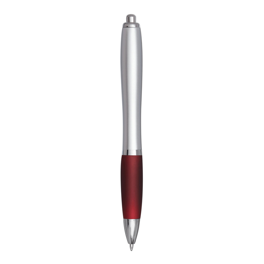 Kugelschreiber SWAYRABS: mit Schaft in taillierter Form aus recyceltem Kunststoff, gummierter Griffzone, Druckmechanismus, Großraummine, blauschreibend