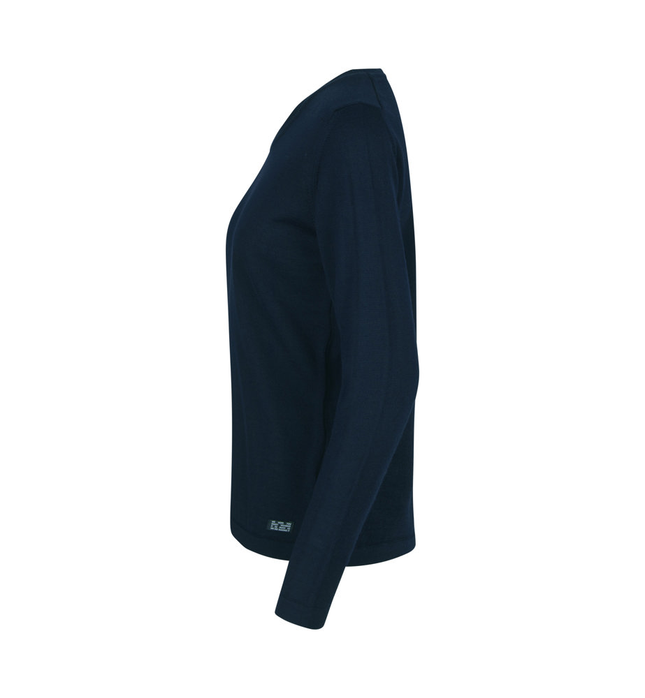 Eleganter Damenpullover mit Rundhalsausschnitt aus herrlich weicher, mulesingfreier Merinowolle. Schicke Details an Hals und Schultern sorgen für ein klassisches, zeitloses Aussehen. Perfekt für Arbeit und Freizeit. Maschinenwaschbar im Wollprogramm - Nach dem Waschen leicht in Form ziehen.