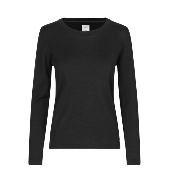 Eleganter Damenpullover mit Rundhalsausschnitt aus herrlich weicher, mulesingfreier Merinowolle. Schicke Details an Hals und Schultern sorgen für ein klassisches, zeitloses Aussehen. Perfekt für Arbeit und Freizeit. Maschinenwaschbar im Wollprogramm - Nach dem Waschen leicht in Form ziehen.