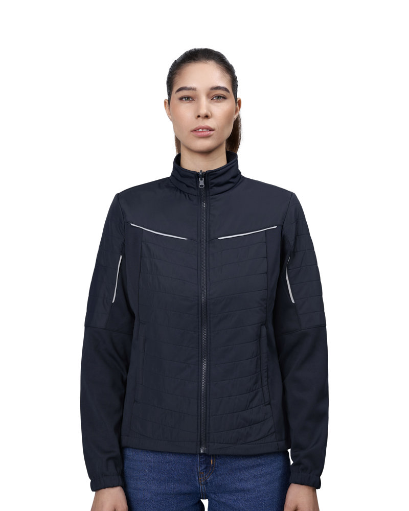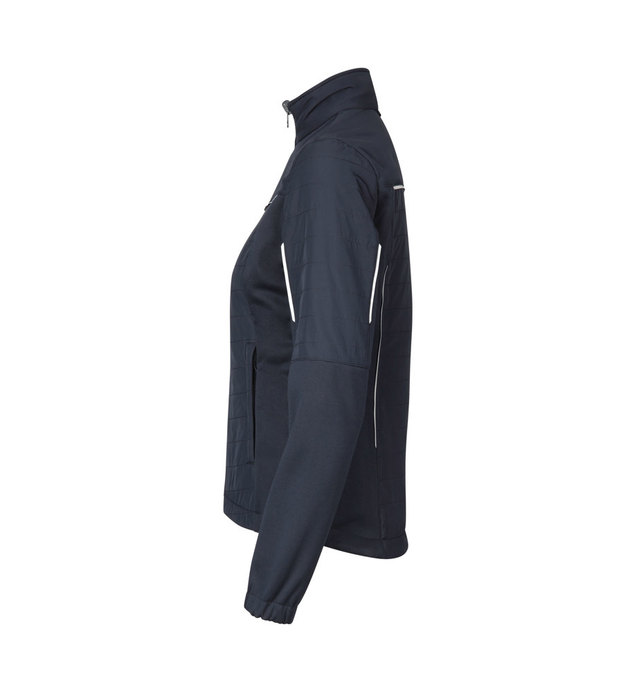 Dehnbare und bequeme Hybridjacke mit leichter Wattierung und sichtbaren Reflektorstreifen. Versteckte Seitentasche mit YKK-Reißverschluss und Innentasche. Die Hybridjacke wirkt in Kombination mit der Zip-n-Mix Shell-Jacke (0713) als zusätzliche Isolierschicht.