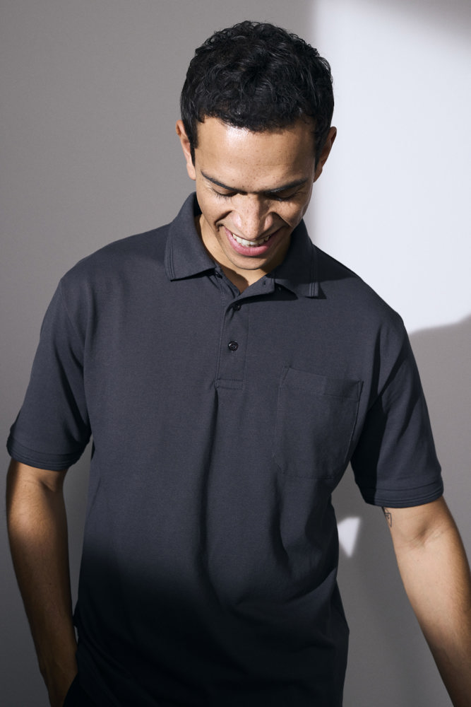 Strapazierfähiges klassisches Poloshirt mit Brusttasche. Nacken- und Schulterband und Nackenspiegel. Vorgekrümpft bei sehr hohen Temperaturen, sowohl vor als auch nach dem Färben, um zusätzliche Stabilität und lange Lebensdauer zu gewährleisten.