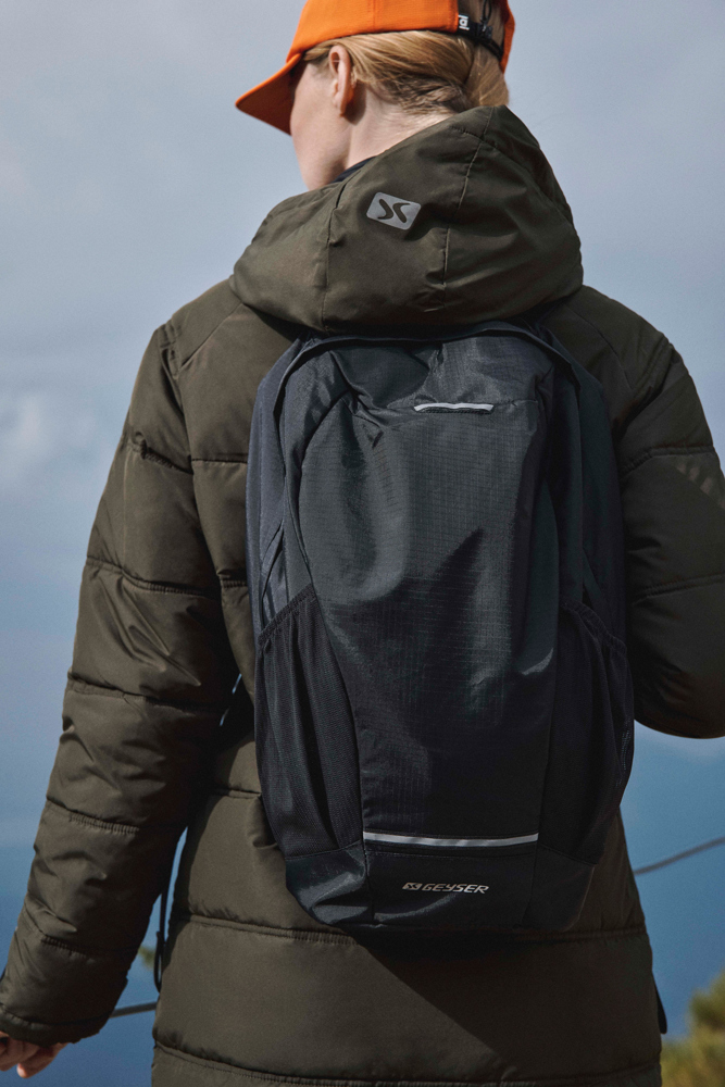 Sportlicher Rucksack mit wasserabweisendem BIONIC-FINISH® ECO. Großes Hauptfach mit Extrafach für 14” Laptop. Seitliche und obere Tasche mit Reißverschluss für z. B. Wasserflache und Schlüssel. Kräftiges Rückenteil und verstellbare Schultergurte, inkl. verstellbarem Brustgurt und Hüftgurt. Reflektorband an Vorderseite und Schultergurten. YKK Reißverschluss. 46 x 19 x 16,5 / 15 L