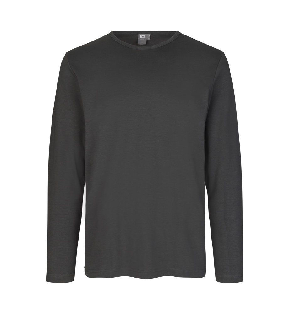 Langärmliges Interlock T-Shirt in weiche Antipilling-Qualität. Schmal gerippter runder Halsausschnitt. Körpernahes Modell.