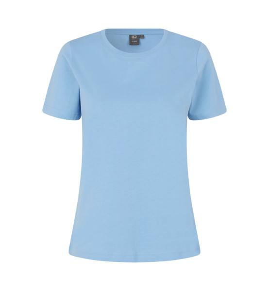 Klassisches T-Shirt mit femininem O-Ausschnitt, vierlagigem Halsbündchen sowie Nacken- und Schulterband. Behält seine Form nach jeder Wäsche.