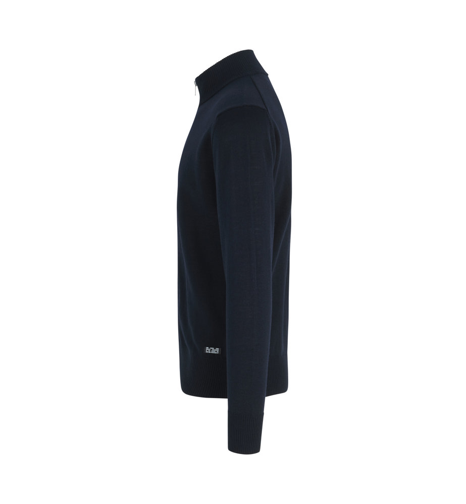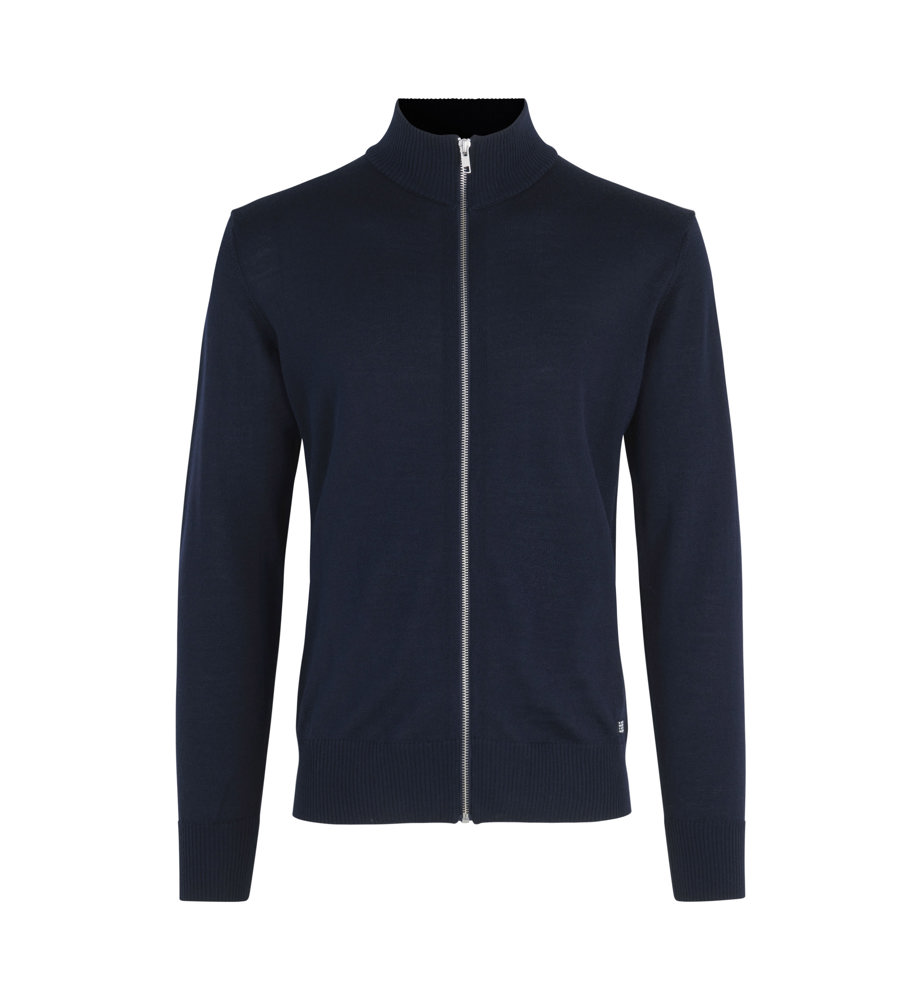 Elegante Strickjacke mit Reißverschluss und hohem Kragen aus weicher, mulesingfreier Merinowolle. Schicke Details am Kragen und an den Schultern für einen klassischen und zeitlosen Look. Perfekt til Arbeit og Freizeit. Sollte im Wollprogramm der Waschmaschine gewaschen werden – nach dem Waschen leicht in Form ziehen