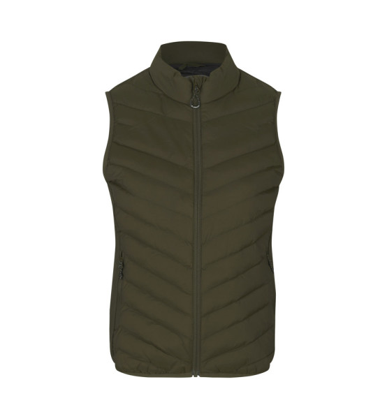 Attraktive wattierte Stretch-Weste mit leichten, schmalen, diagonalen Kanälen und Seitenteilen aus dehnbarer Qualität, die für hohen Tragekomfort und einen sportlichen Look sorgen. Seitentaschen mit Reißverschluss. Attraktives Produkt mit ohem funktionalem Komfort.