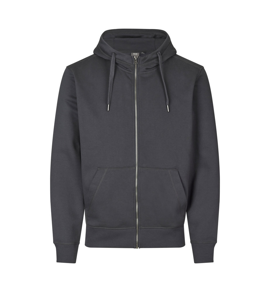 Klassische Kapuzenjacke mit Känguruhtasche in neuer und moderne Passform. High-cut Halsabschluss und durchgehender Reißverschluss. Kordel in der Kapuze und Rippabschluss an Ärmeln und Bund. Kräftige Qualität. Weiche, angeraute Innenseite.