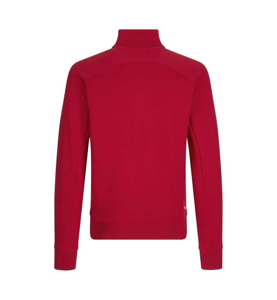 Cardigan in kräftiger Qualität mit durchgehendem Reißverschluss sowie zwei Seitentaschen. 2 x 2 Rippabschluss am Kragen, Ärmeln und Bund. Angeraute Innenseite.