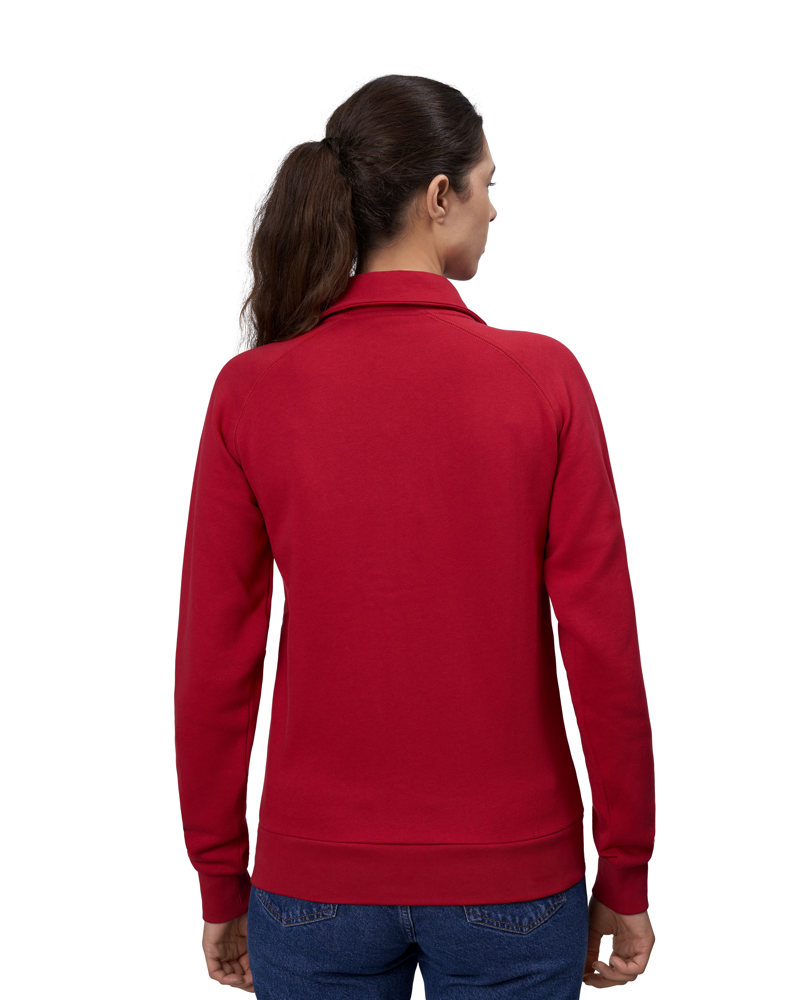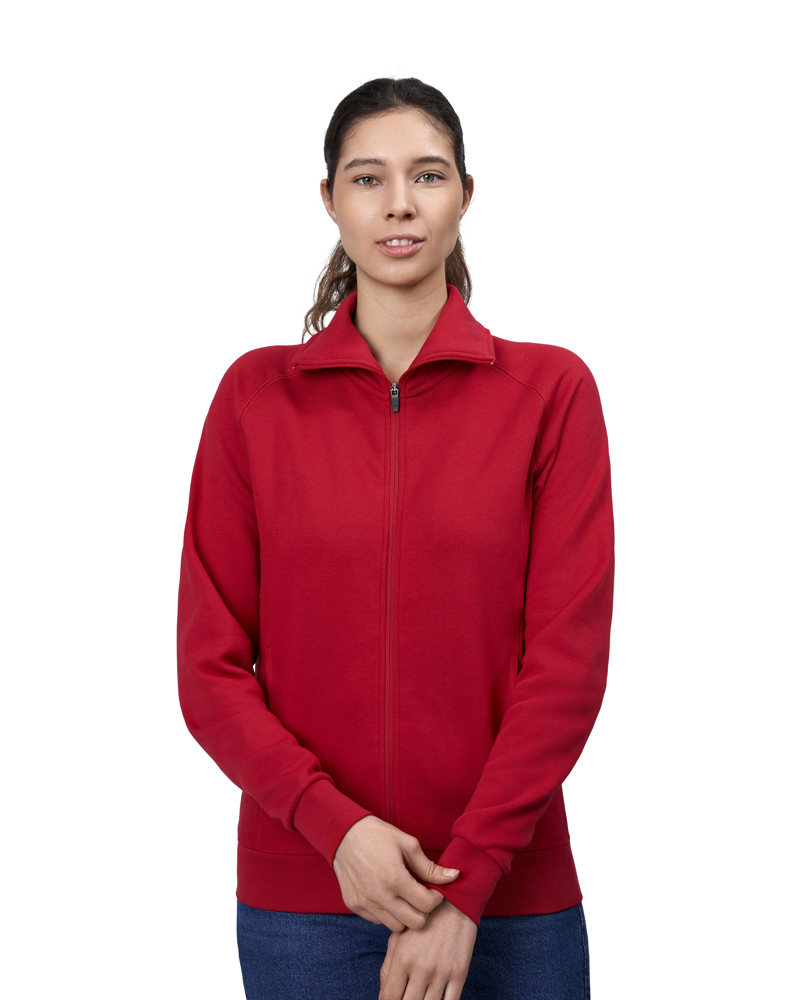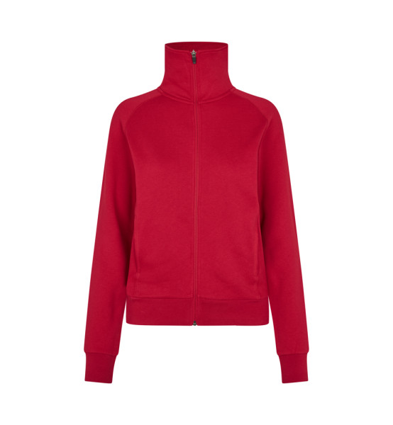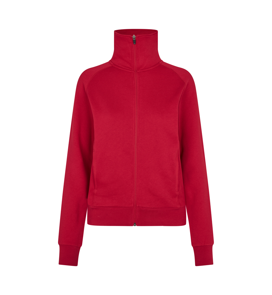 Jacke in kräftiger Qualität mit durchgehendem Reißverschluss, zwei Schubtaschen und Raglanärmel. Nackenband, Ripp an Ärmeln und Bund und schicke Flatlocksteppnähte. Weiche, angeraute Innenseite. Leicht figurbetont.