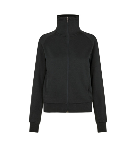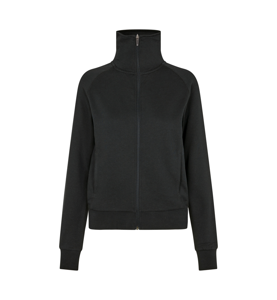 Jacke in kräftiger Qualität mit durchgehendem Reißverschluss, zwei Schubtaschen und Raglanärmel. Nackenband, Ripp an Ärmeln und Bund und schicke Flatlocksteppnähte. Weiche, angeraute Innenseite. Leicht figurbetont.