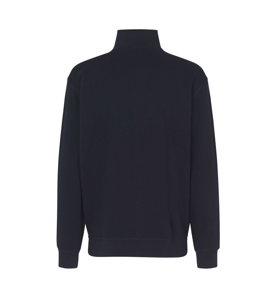 Jacke in kräftiger Qualität mit durchgehendem Reißverschluss und zwei Schubtaschen. Nackenband, Ripp an Ärmel und Bund und schicke Flatlocksteppnähte. Weiche, angeraute Innenseite.