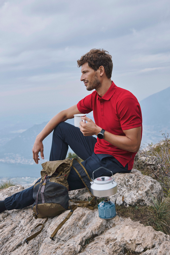 Exklusives baumwollähnliches Poloshirt aus schweißtransportierendem Material. Schicker, gestrickter Stehkragen für optimale Passform. Ärmel mit elastischem Rippabschluss. Kurzer Seitenschlitz in Seitennaht für mehr Beweglichkeit.