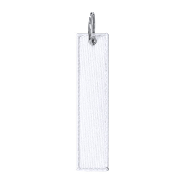 Schlüsselanhänger mit Nähten am Rand in einer Farbe, die zum Polyesterkörper passt. Enthält zwei silberne Metallringe. Hauptring ideal für Schlüssel.