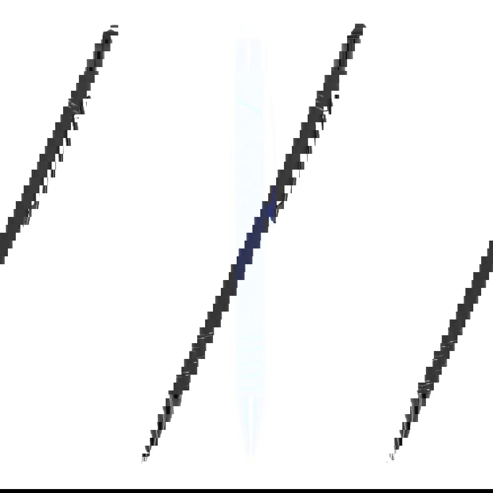 Kugelschreiber mit Metallclip, Stylus-Funktion und Softtouch-Oberfläche. Der Druckknopf, der Clip und die Ringe sind in passenden glänzenden Farben gehalten. Der Kugelschreiber wird mit einer blauen Jumbo-Mine geliefert.