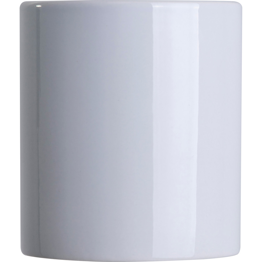Sublimationstasse aus Keramik mit 250 ml Fassungsvolumen. Ihre Werbungen wir mittels eines Sublimationsdrucks auf der Tasse an.