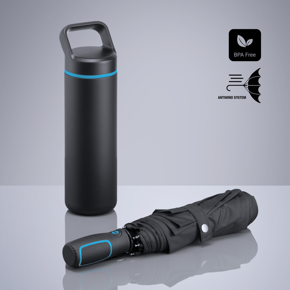 Outdoor Set: Edelstahl-Trinkflasche 650 ml und Automatikschirm