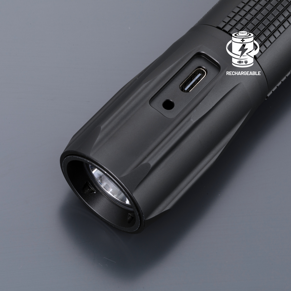 Aus robustem Aluminium gefertigt, bietet sie fünf Leuchtmodi — Low (30 LM), Medium (250 LM), High (800 LM), Strobe (800 LM) und SOS (250 LM). Betrieben mit einem 18650 Li-Ionen-Akku mit 1800 mAh. Farbige Ringe verleihen ein stilvolles Design, während die leichte und kompakte Bauweise sie ideal für Outdoor-Aktivitäten, Notfälle und den täglichen Gebrauch macht.