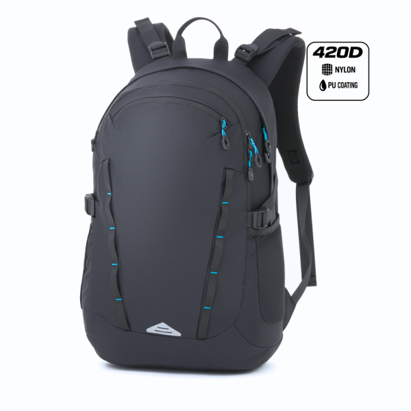 Ein geräumiger und robuster Sportrucksack aus 420D-Nylon mit PU-Beschichtung. Er verfügt über zwei Hauptfächer, eine Fronttasche mit Reißverschluss, verstellbare Seitenriemen sowie verstellbare Brust- und Schultergurte für eine individuelle Passform. Das belüftete Rückenpanel sorgt für Komfort bei längerem Tragen, und ein Gepäckgurt ermöglicht die einfache Befestigung am Koffergriff.