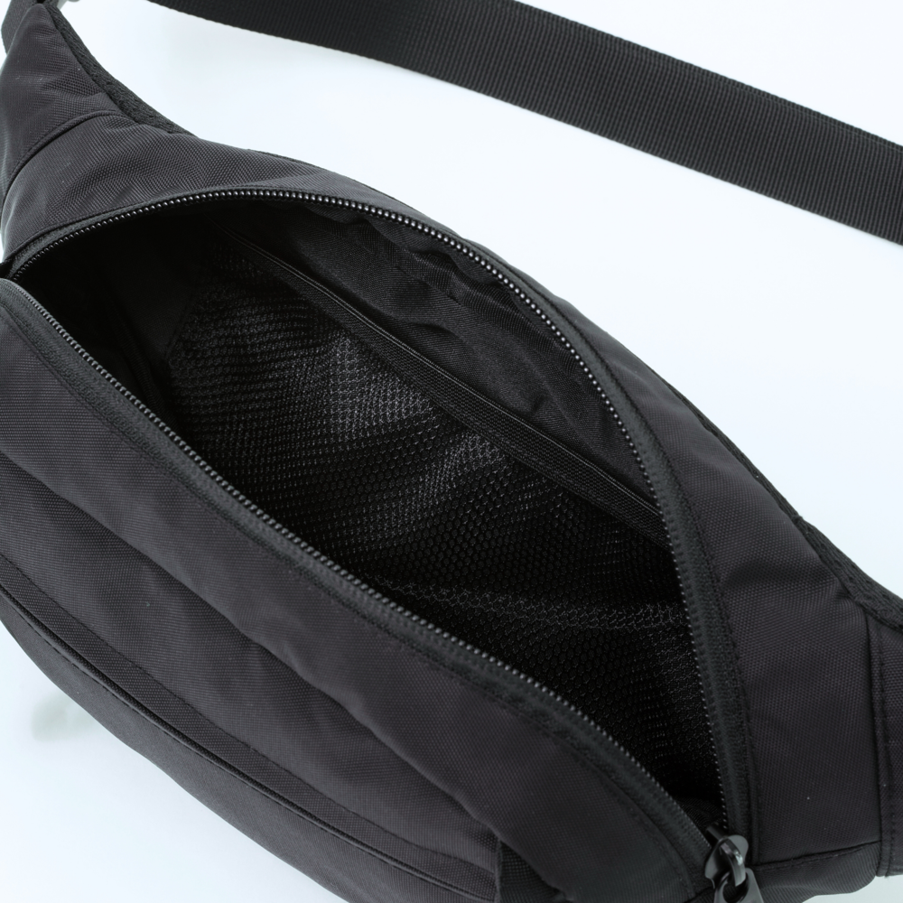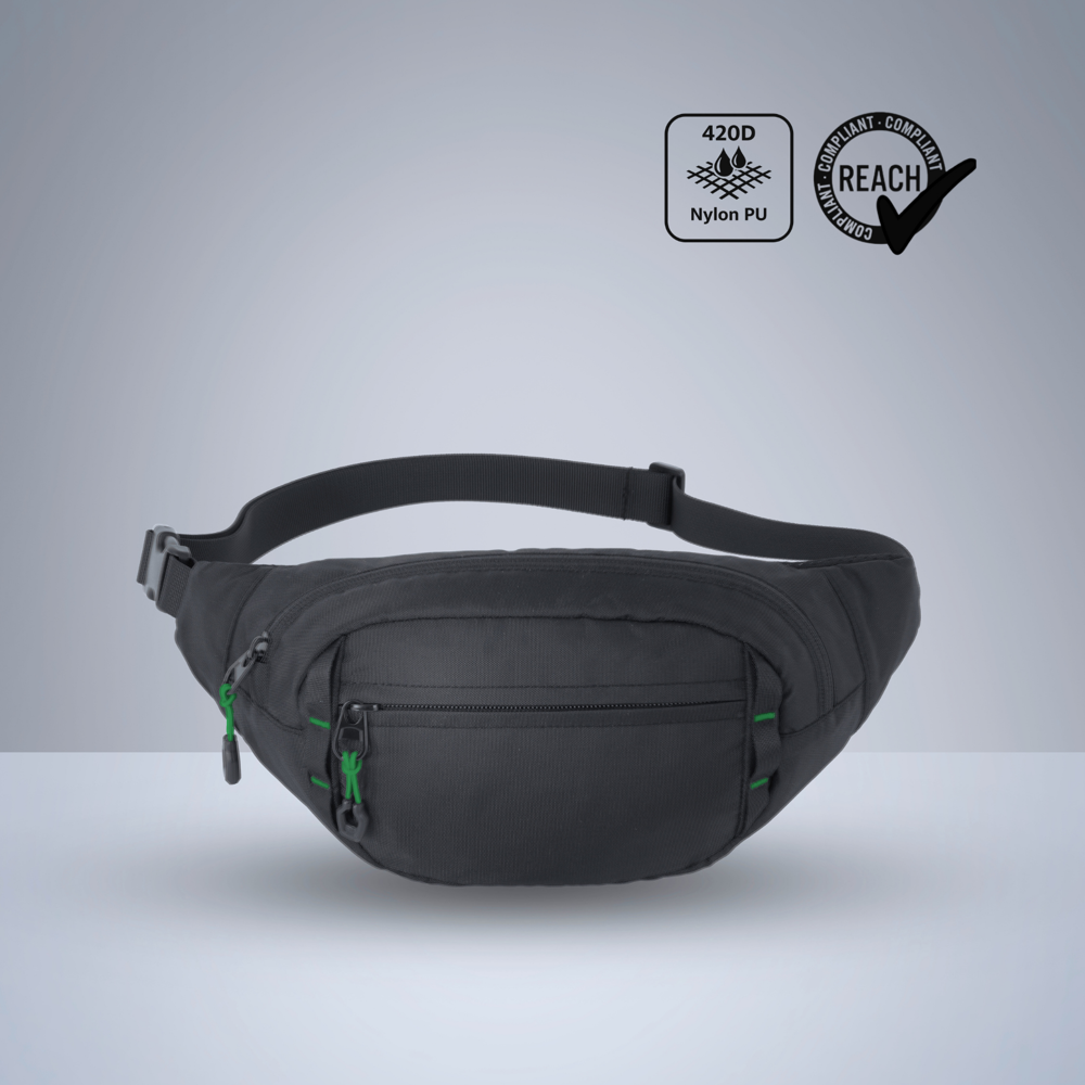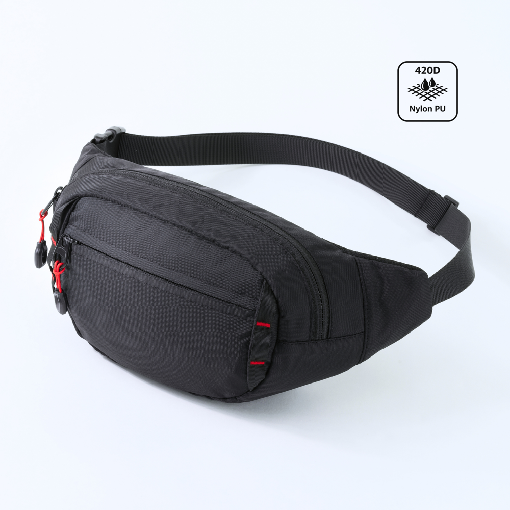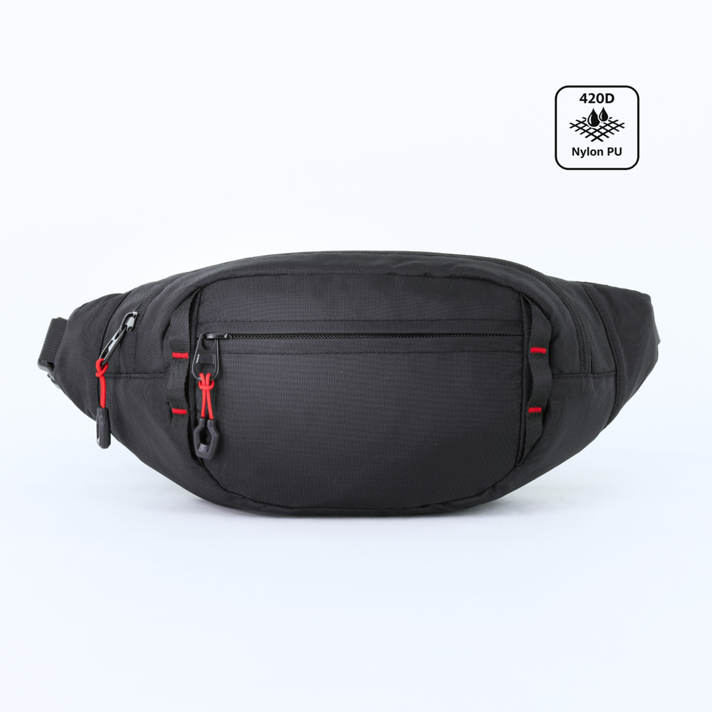 Eine leichte und robuste Hüfttasche aus 420D-Nylon mit PU-Beschichtung. Verfügt über ein Hauptfach mit Reißverschluss, eine Fronttasche mit Reißverschluss sowie eine reflektierende elastische Kordel für bessere Sichtbarkeit. Das gepolsterte Rückenpanel aus Mesh sorgt für hohen Tragekomfort bei jeder Aktivität. Ideal für Reisen, Laufen und den täglichen Gebrauch.