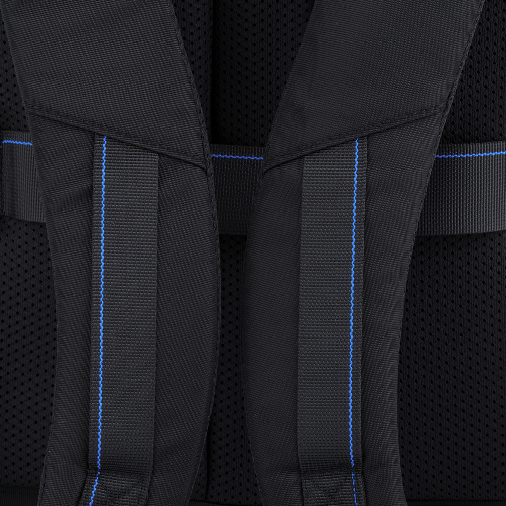 Ein geräumiger und stilvoller Rucksack mit einem Fassungsvermögen von 22 Litern. Er verfügt über zwei Hauptfächer, seitliche Netztaschen, eine wasserdichte Fronttasche sowie einen Gurt auf der Rückseite zur Befestigung am Koffer. Gurtband mit reflektierendem Faden erhöht die Sicherheit, während das hochwertige Futter für Langlebigkeit sorgt. REACH-zertifiziert.