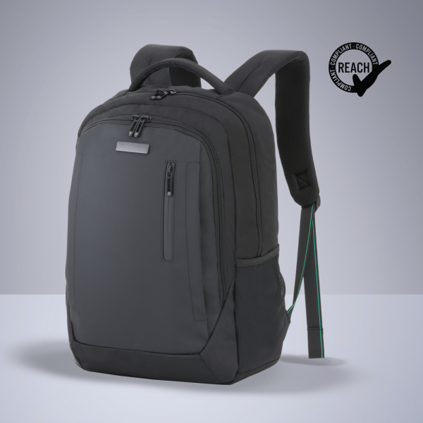 Ein geräumiger und stilvoller Rucksack mit einem Fassungsvermögen von 22 Litern. Er verfügt über zwei Hauptfächer, seitliche Netztaschen, eine wasserdichte Fronttasche sowie einen Gurt auf der Rückseite zur Befestigung am Koffer. Gurtband mit reflektierendem Faden erhöht die Sicherheit, während das hochwertige Futter für Langlebigkeit sorgt. REACH-zertifiziert.