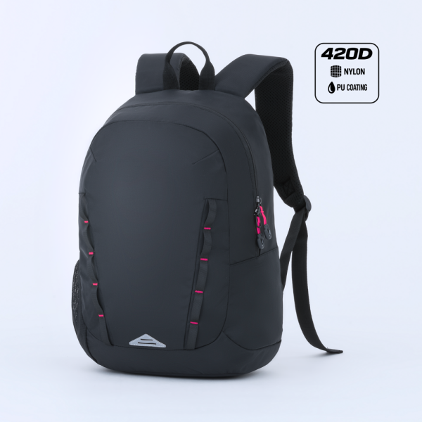 Ein kompakter und langlebiger Sportrucksack aus 420D-Nylon mit PU-Beschichtung. Verfügt über ein Hauptfach, eine elastische Netztasche an der Seite sowie ein gepolstertes Rückenpanel aus Mesh für hohen Tragekomfort. Ausgestattet mit standardmäßigen PP-Gurten für einfaches Tragen. Ideal für Sport, Outdoor-Aktivitäten und den täglichen Gebrauch.