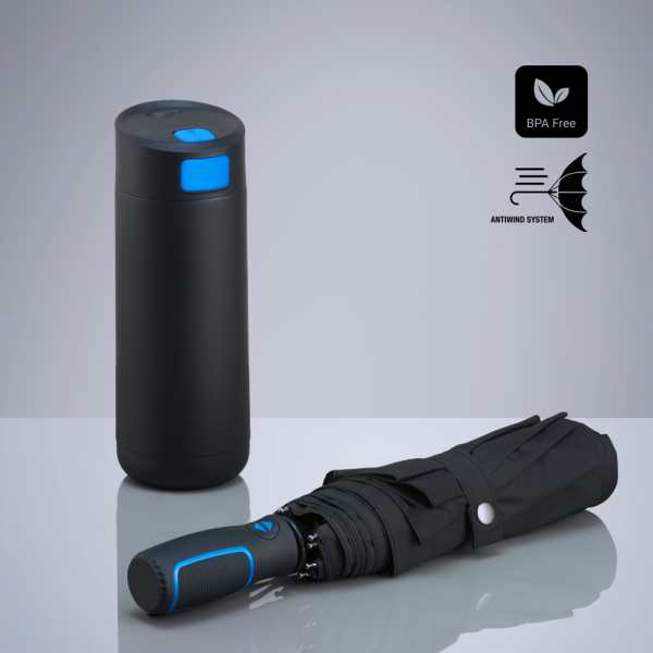 Ein praktisches Set, das einen langlebigen Thermobecher mit einem robusten Regenschirm... mehr