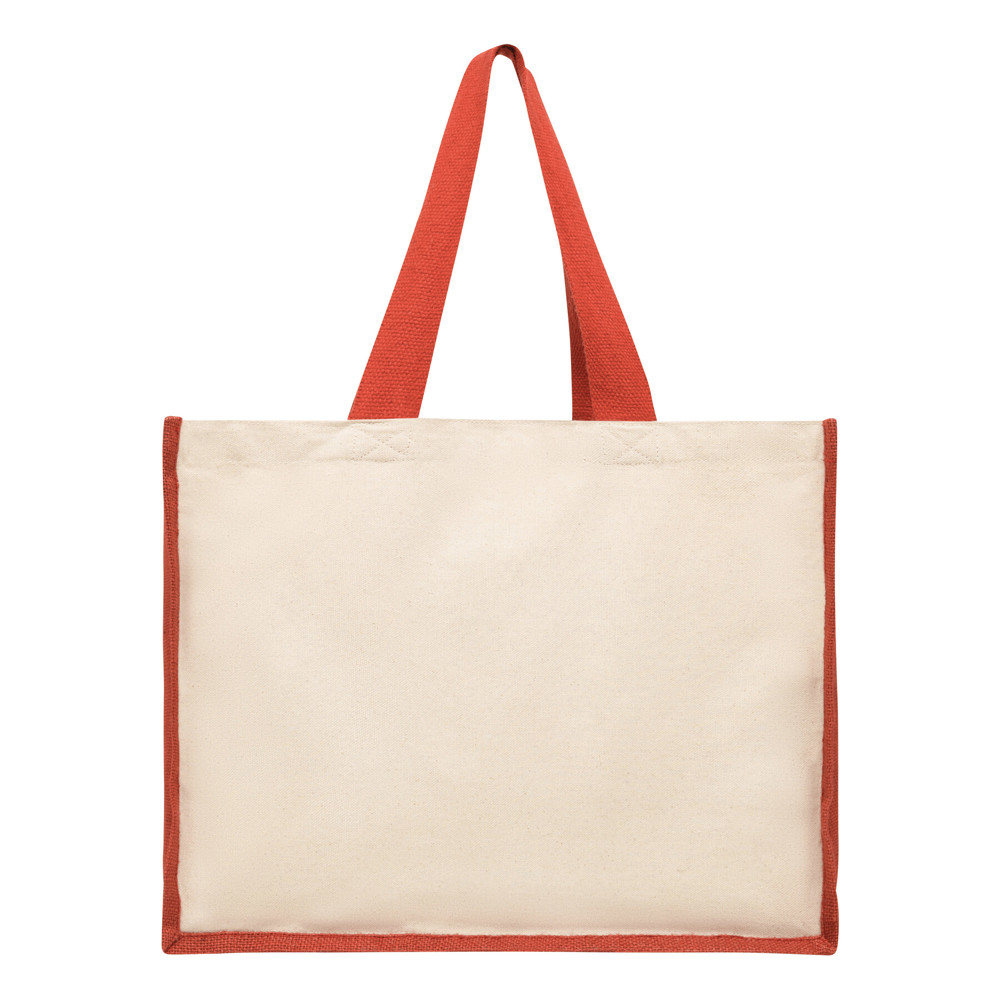 Shopper FUTURE: aus Jute und Canvas, mit langen Baumwoll-Henkeln und farbigen Details