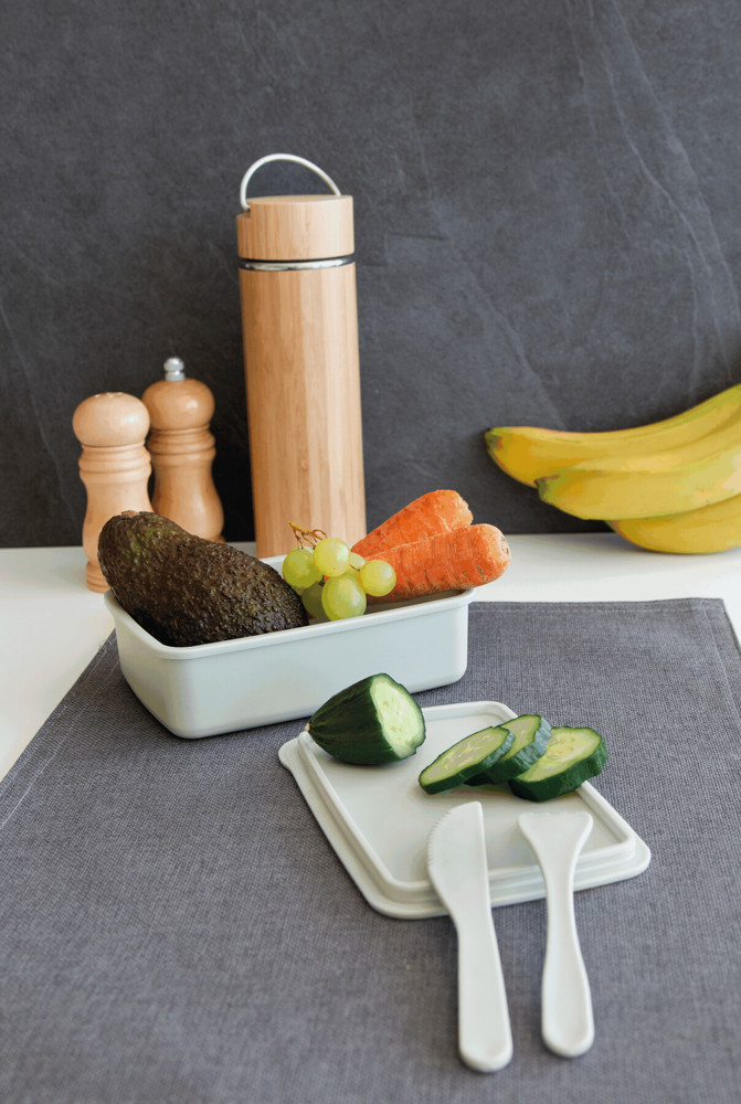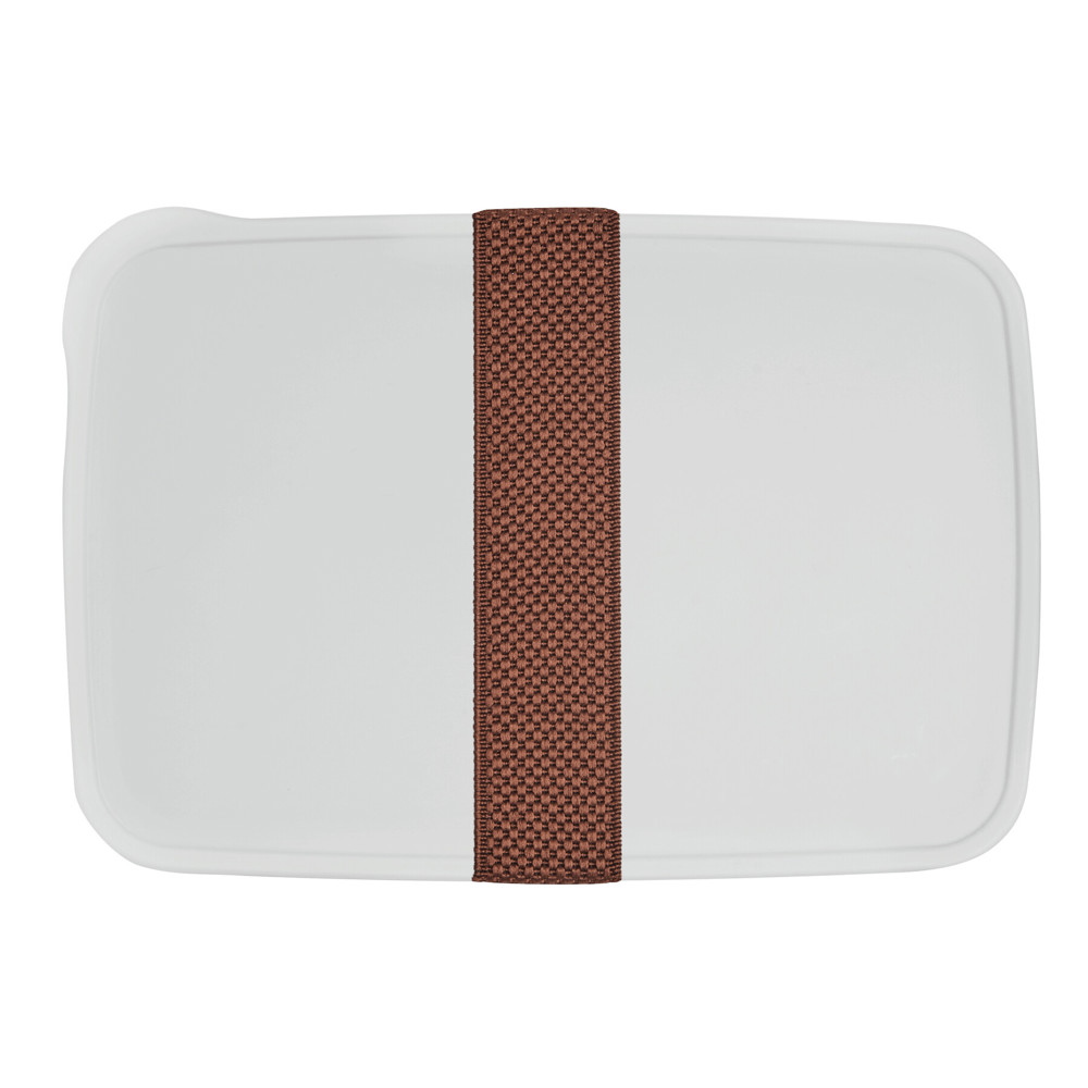 Lunchbox NOONTIME: mit Deckel mit Silikon-Dichtring, Gummiband zum Verschließen, Messer und Gabel sind in den Laschen am Gummiband befestigt, Füllmenge ca. 700 ml, Zubehör (Gummiband und Besteck) wird in der Box geliefert