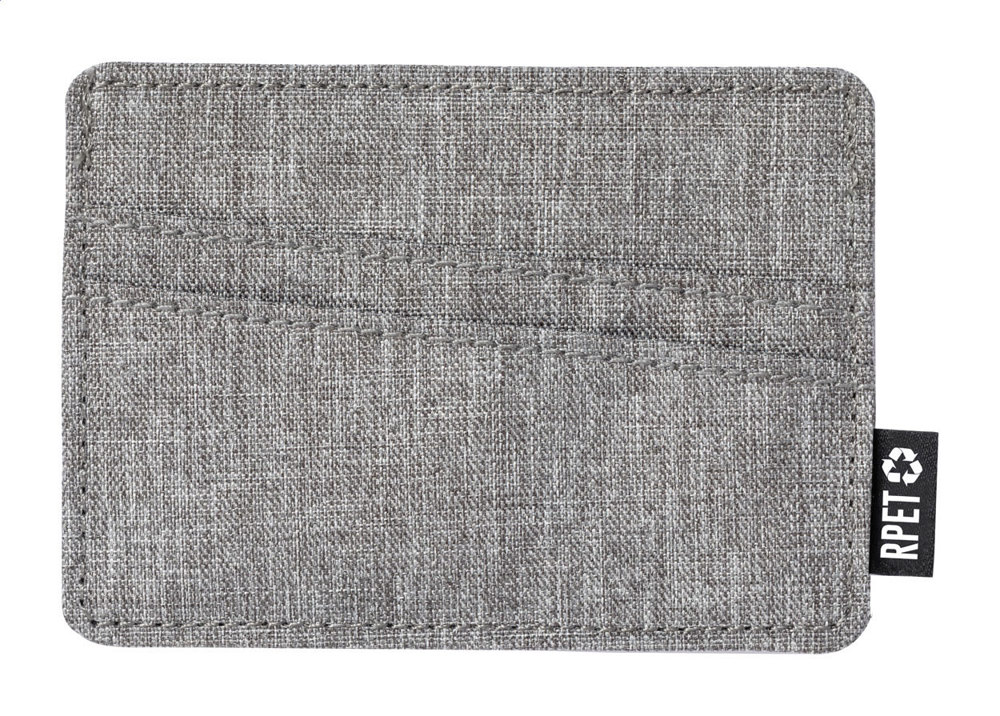 Kreditkartenbörse aus RPET Polyester mit 3 Kartenfächern und RPET-Label.