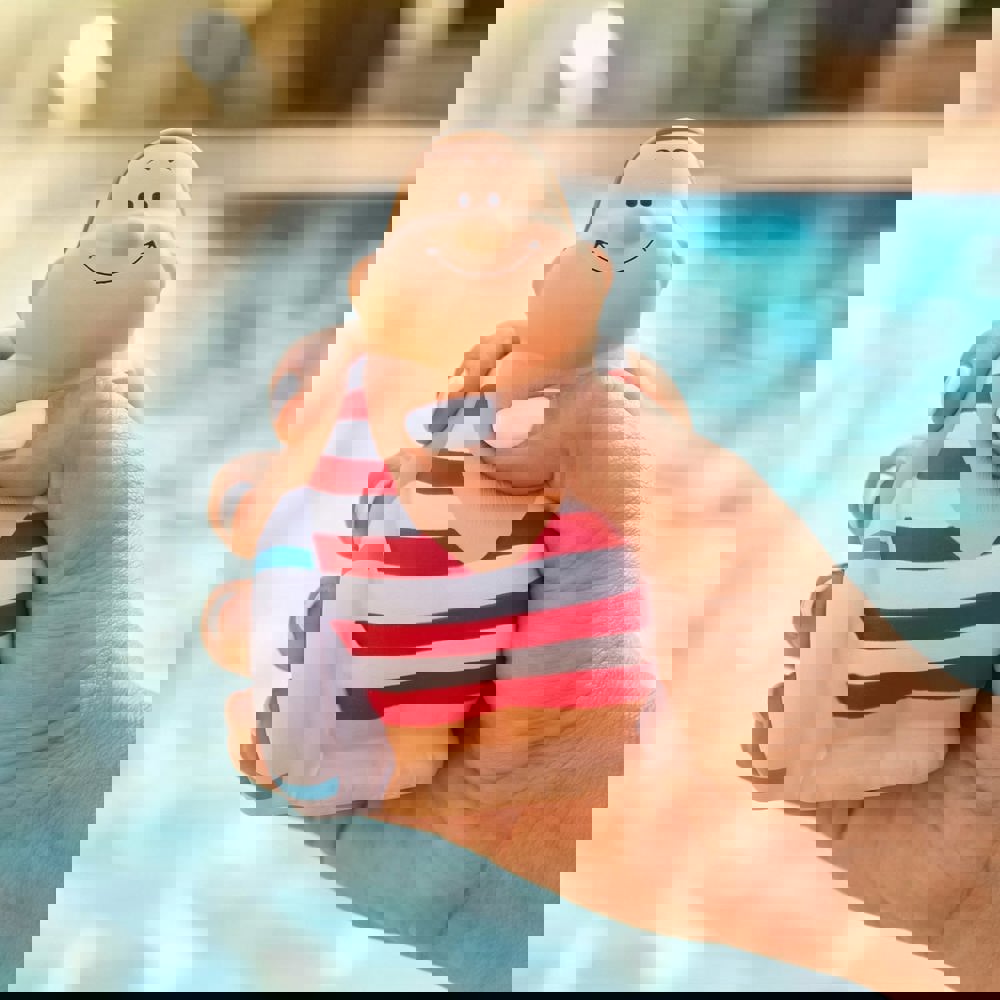 Fröhlich und kraftvoll zieht unser Schwimmer Bert® ruhig seine Bahnen. Im modisch geringelten Badeanzug versprüht er entspannt gute Laune. Bei akuten Stressanfällen springt er rettend ein: SQUEEZIES® Schwimmer Bert® zum Abbau von Stress einfach "zusammenknautschen". Durch die Materialbeschaffenheit nimmt das Produkt die Ursprungsform wieder ein.
