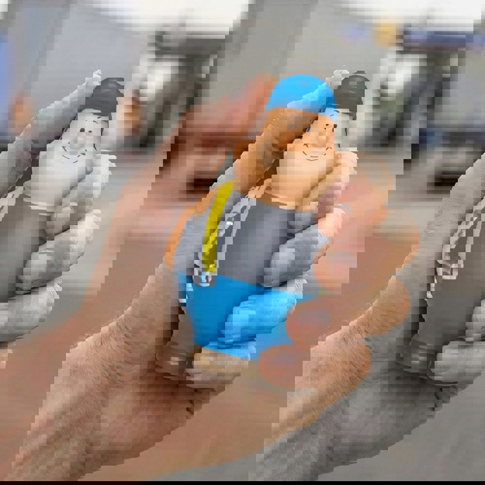 Gelassen rollt Trucker Bert® in seinem Brummi über die Autobahnen. Mit Kaffee und Radmutterschlüssel bestens ausgestattet liefert er Entspannung pur: SQUEEZIES® Trucker Bert®, zum Abbau von Stress einfach "zusammenknautschen". Durch die Materialbeschaffenheit nimmt das Produkt die Ursprungsform wieder ein.