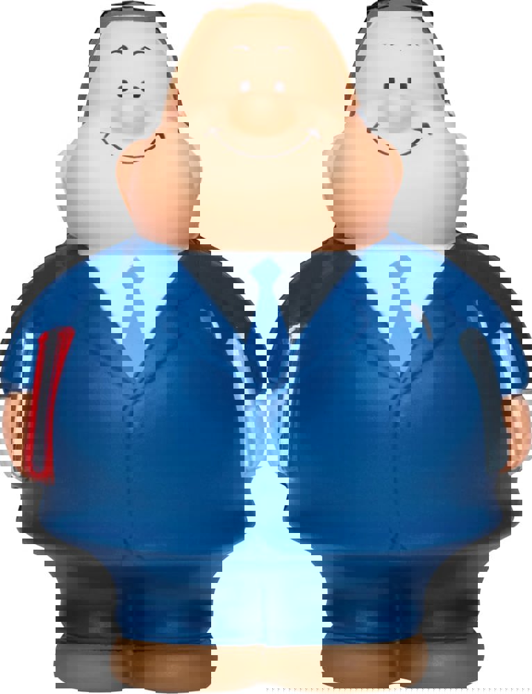 Unser Bert® ist ein absolutes Allroundtalent. Als Berater Bert® stellt er dies besonders unter Beweis. Ob Banken, Immobilien, Versicherungen der Berater Bert® kennt sich überall bestens aus und hat die passenden Unterlagen dabei. Mit ehrlichem Lächeln und modischem Anzug strahlt er eine große Vertrauenswürdigkeit aus. Nebenbei sorgt er für eine entspannte Grundstimmung. SQUEEZIES® Berater Bert® zum Abbau von Stress einfach "zusammenknautschen". Durch die Materialbeschaffenheit nimmt das Produkt die Ursprungsform wieder ein.