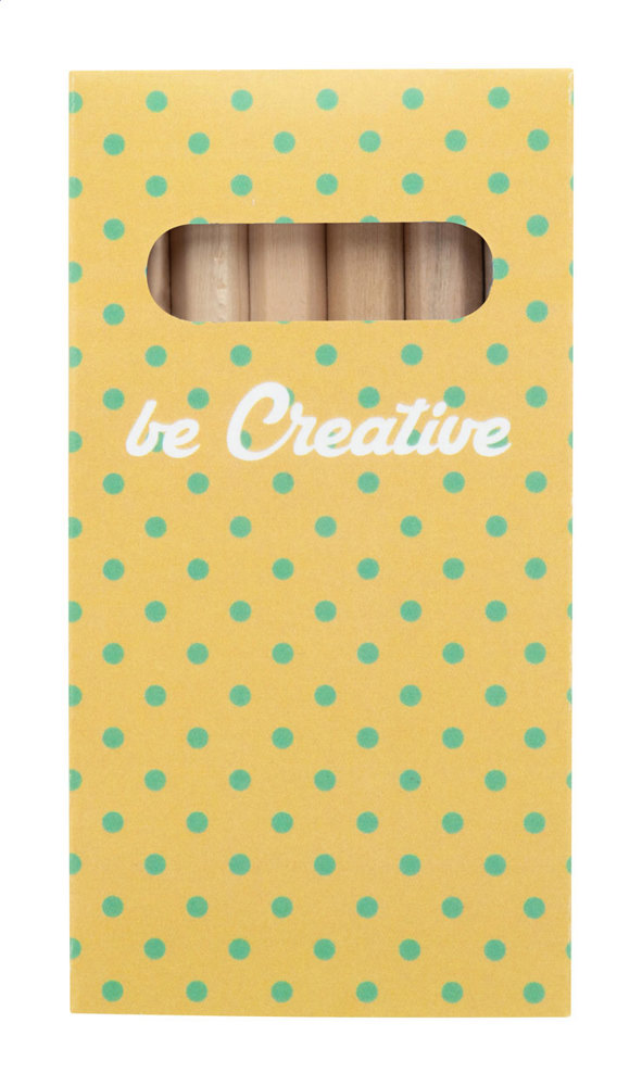 Holzbuntstifte (6 Stk.) in individueller Verpackung (CMYK). Der Preis ist inkl. Digitaldruck. Mindestmenge: 100 Stk.