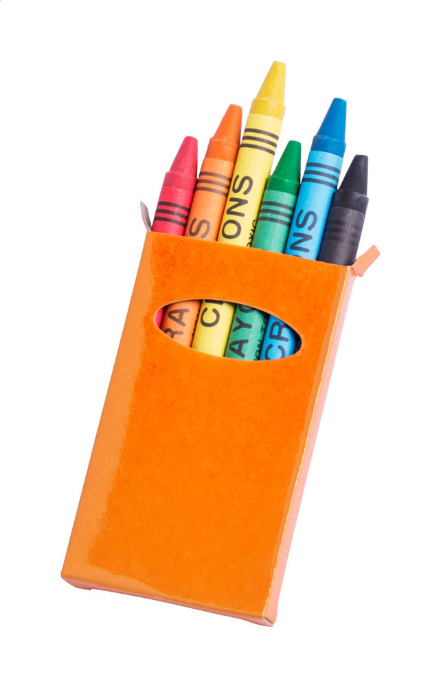 Wachsmalstifte (6 Stk.) in farbiger Pappschachtel.